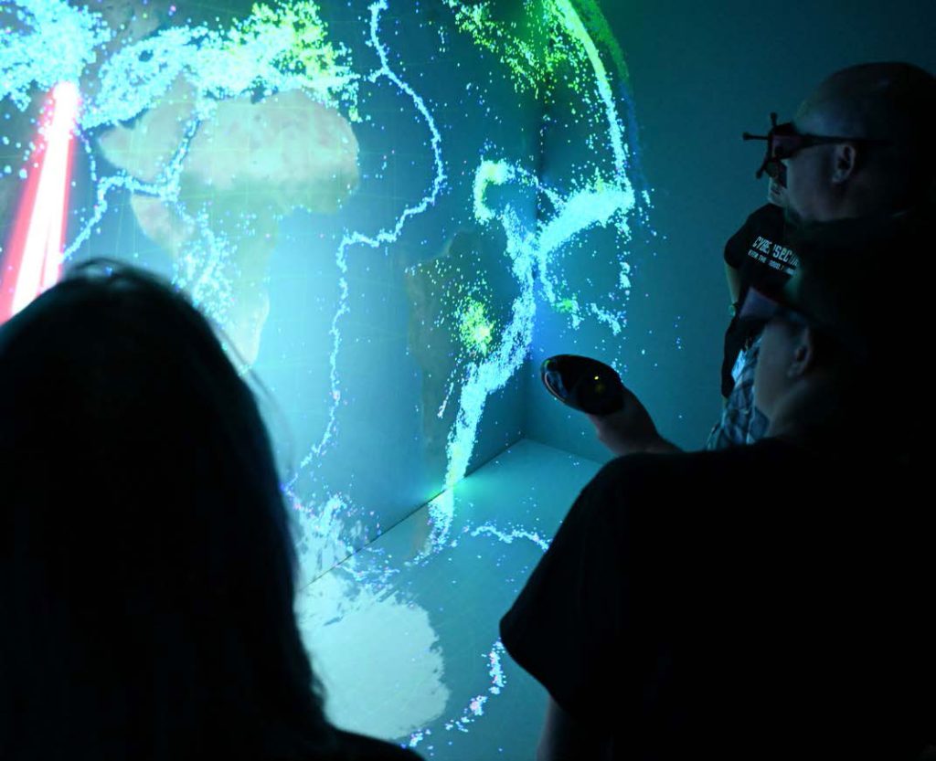 Students learn about digital mapping in the CAVE.