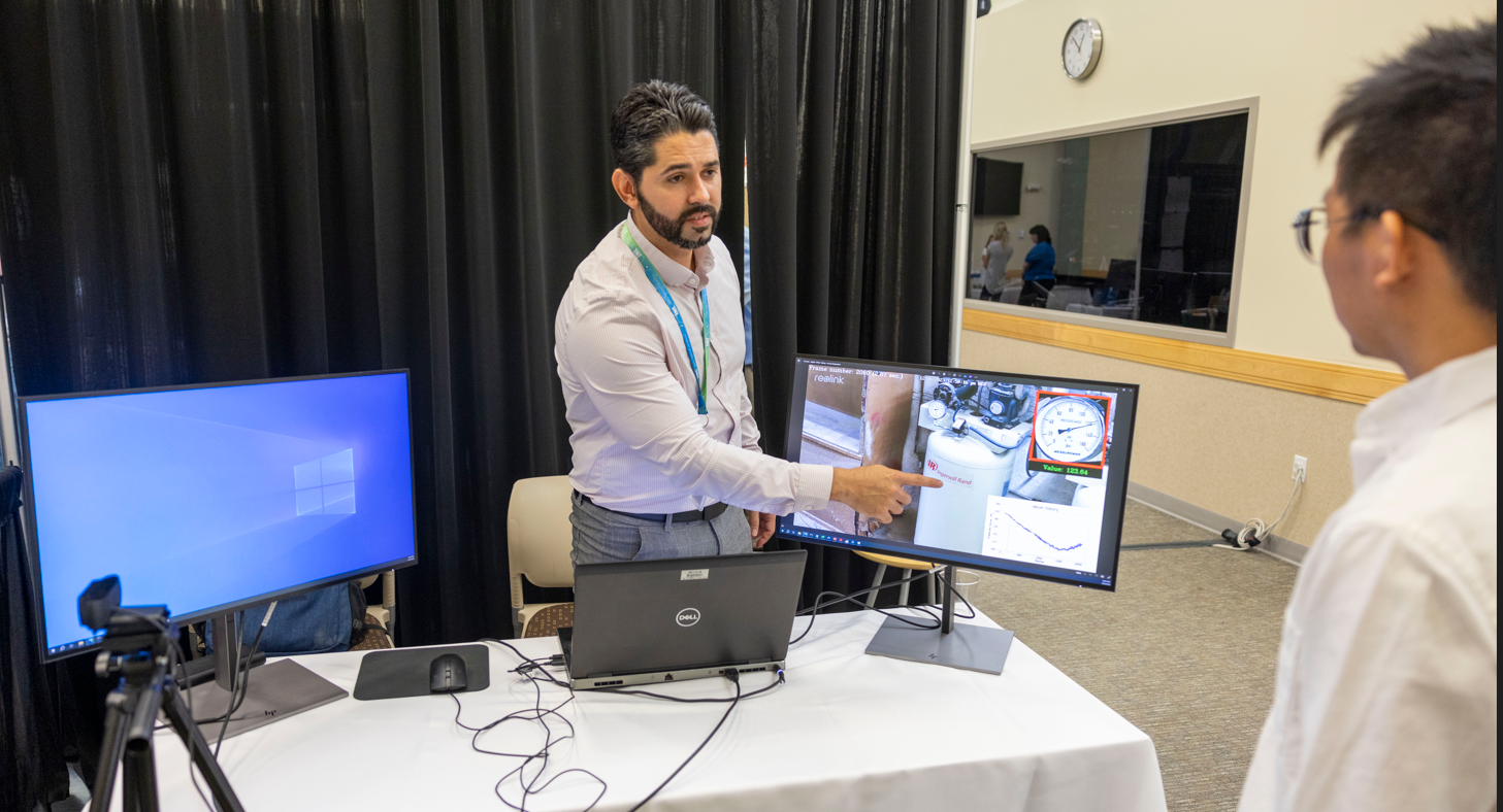 Still under the nuclear power plant AI/ML umbrella, another demonstration linked 1960s nuclear power plant infrastructure to modern technology. “Most of the instruments on their control panels or in the field are analog, so there’s a need to convert that data into a digital form so that we can use that data to monitor the plant condition or, even on our own nuclear reactor simulators, train new operators,” said machine learning Ph.D. student and INL intern Roger Boza.